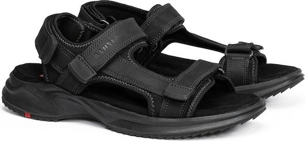 Lloyd Herren Sandale aus Leder in Schwarz mit drei Klettverschlüssen und Innenausstattung aus weichem Textil.
