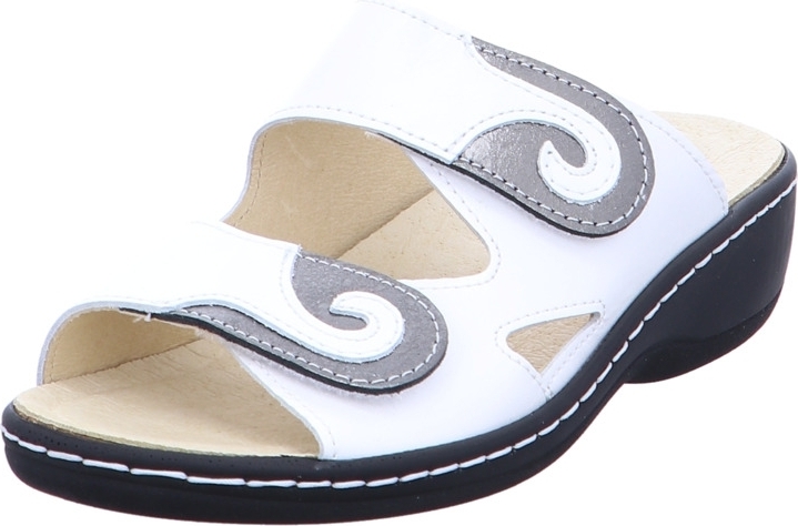 Damen - Sandale aus Leder in weiß mit Klettverschluss.