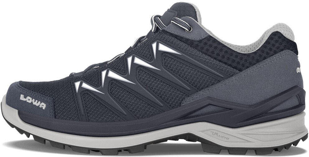 die sportlichen Gene sind bei den halbhohen Modellen INNOX PRO GTX LO allein schon optisch nicht von der Hand zu weisendie flexiblen Multifunktionsschuhe sind aus einem robusten Synthetik-Materialmix gefertigt, das jede Bewegung mitmacht und maximalen Tragekomfort bietetwährend die direkt angespritzte Zwischensohle aus LOWA DynaPU® für optimale Dämpfung sorgt, ermöglichen der innovative LOWA-MONOWRAP®-Rahmen und der Soft Stabilizer eine optimale Führung des Fußes bei jedem Schrittweiter erhöht auch das engmaschige Obermaterial mit den aufgenähten Rahmenelementen die Fuß-Führung bei jeder Bewegungdamit die Füße selbst bei schlechtem Wetter stets trocken bleiben und bei anstrengenden Touren im Gelände nicht ins Schwitzen geraten, sorgt das atmungsaktive und wasserdichte GORE-TEXFutter für optimales Klima im Schuhmultifunktional und farbenfroh wirken die Modelle INNOX PRO GTX LO Ws sowie INNOX PRO GTX LO selbst im Stand als wären sie ständig in Bewegungdie sportlichen und wunderbar leichten Multitalente sind also nicht unbedingt die perfekte Wahl, wenn man lieber auf der Parkbank sitzen bleiben willvielmehr regen die Alleskönner zu jeder Menge Bewegung an und sind das beste Mittel gegen jede Ausrede LOWA Index: All Terrain SportObermaterial: Synthetik/TextilFutter: GORE-TEX® FootwearSohle: LOWA® MULTI TRAC® Gewicht: 830 Gramm/Paar (Größe 42,5)Farbe: stahlblau/weissModell 2024
