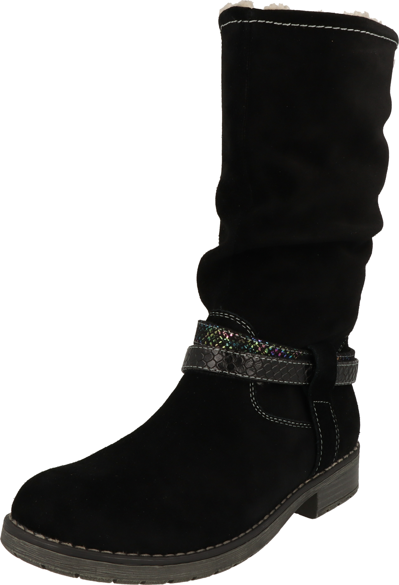 Gewicht , 1400 g, |Farbe , schwarz, |Obermaterial , Veloursleder, |Obermaterialart , Veloursleder TEX, |Obermaterialeigenschaften , TEX-Membran, |Innenmaterial , Kunstfell, |Innenmaterialeigenschaften , wärmend, |Stil , sportlich, |Besondere Merkmale , mit TEX-Membran, |Verschluss , Reißverschluss, |Schuhspitze , Rund, |Laufsohlenmaterial , TPR, |Laufsohleneigenschaften , profiliert, |Laufsohlenprofil , profiliert, |Membrane , TEX, |Reinigungseigenschaften , mit Imprägnierspray, |Schuhweite , normal, |Schafthöhe , 26 cm, |Schaftweite , Normal, |
