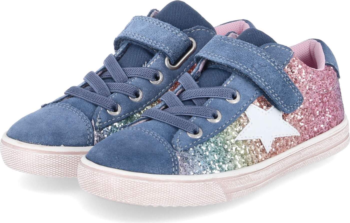 Lurchi Salita Sneaker, Schnürschuh mit bunten Glitzerbesatz, Größenschablone z. Download (blau/bunt)