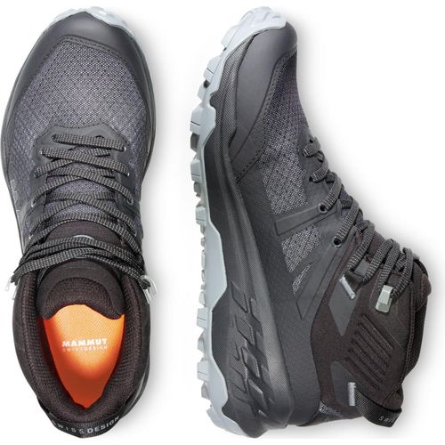 Die hohe Standhöhe wirkt in Kombination mit der starken EVA-Zwischensohle besonders schrittdämpfend. Für guten Grip sorgt die Sohle mit der «Mammut Swiss Design»-Gummimischung.