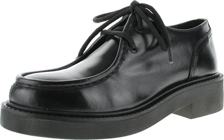 Gefertigt aus edlem Kalbleder mit einem feinen Glanz, zeichnet er sich durch die markante Mokassinnaht und stabile Rundschnürung mit hochwertigen Metallösen aus. Die Innenseite begeistert mit atmungsaktivem Mikrofaserfutter und einer komfortablen Innensohle aus Rindleder und Memory Foam.