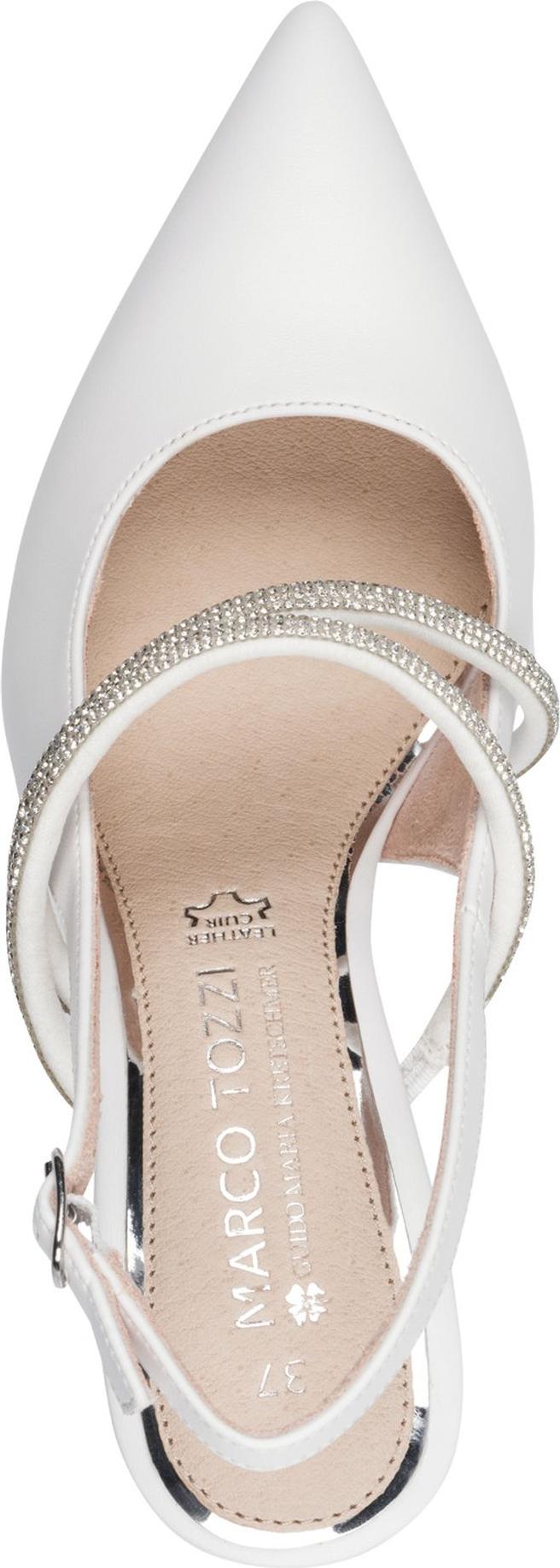 Diese Slingpumps von Marco Tozzi in Weiß kombinieren klar gezeichnete Spitze und 7 cm Trichterabsatz zu einem stilvollen Auftritt. +