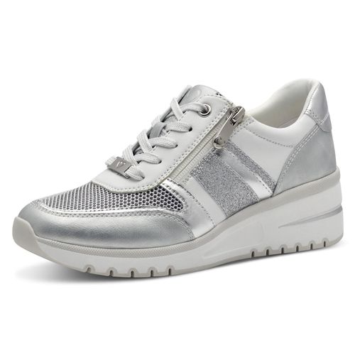 marco tozzi Keilsneaker, Freizeitschuh, Halbschuh, Schnürschuh mit Außenreißverschluss (weiß)