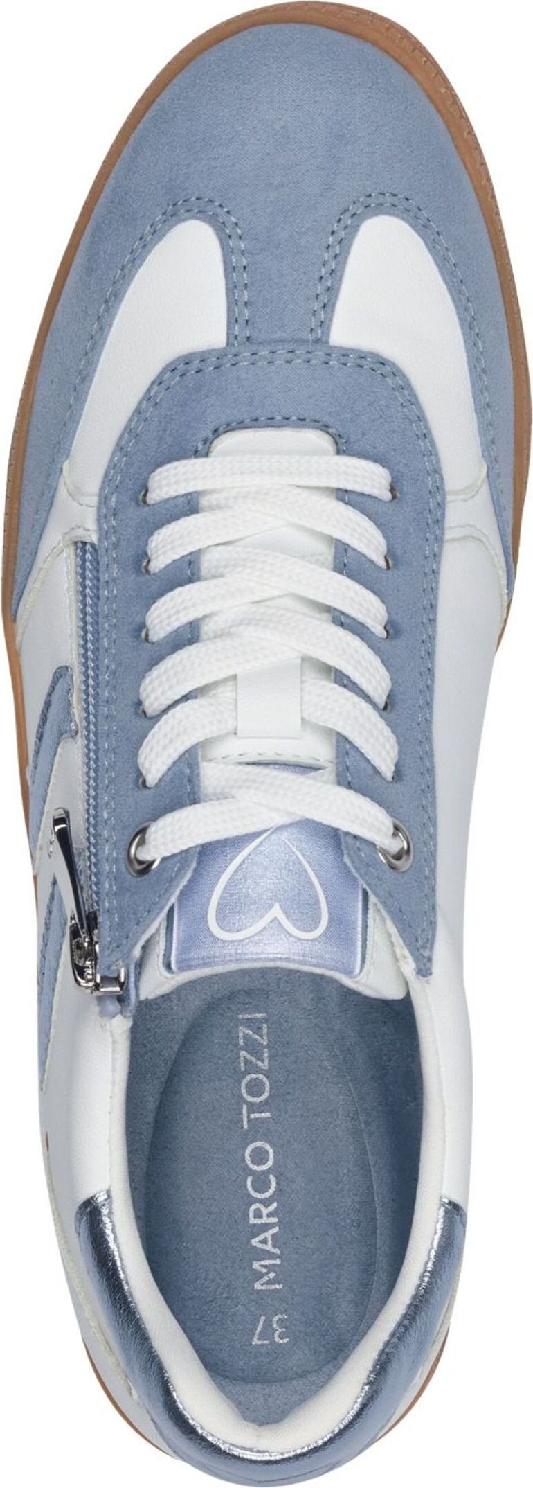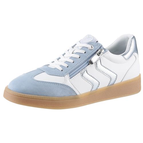 marco tozzi Plateausneaker, Freizeitschuh, Halbschuh, Schnürschuh mit Kontrastbesatz (blau/weiß)