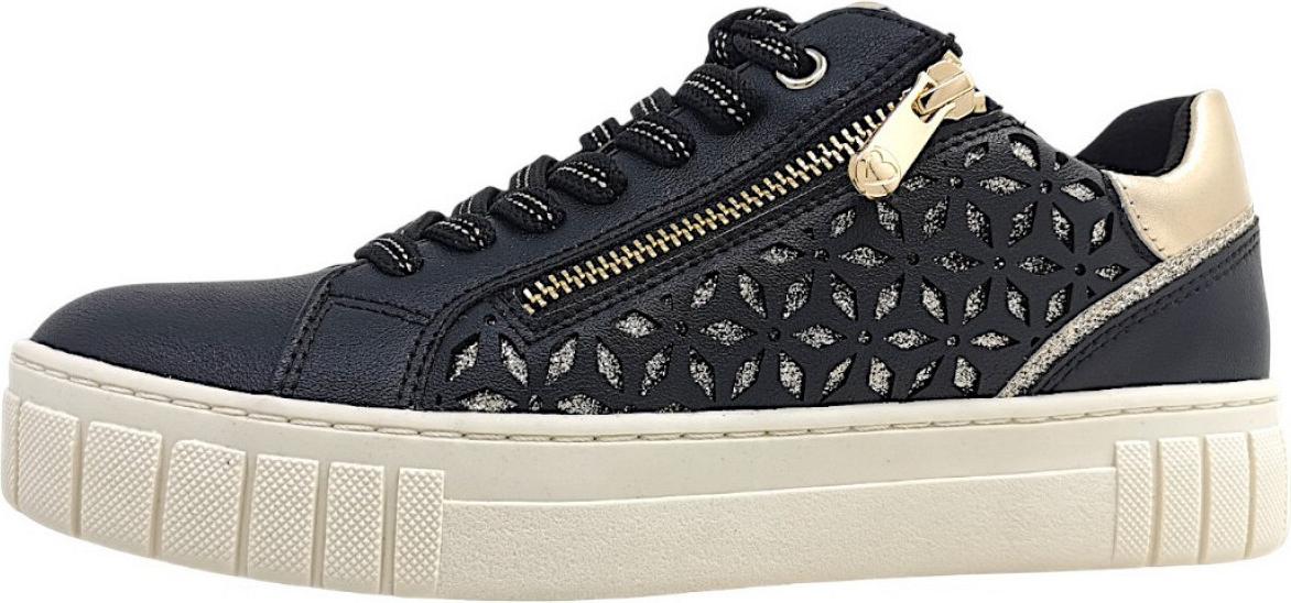 marco tozzi Plateausneaker, Freizeitschuh, Halbschuh, Schnürschuh mit unterlegtem Lochmuster (gold/schwarz)