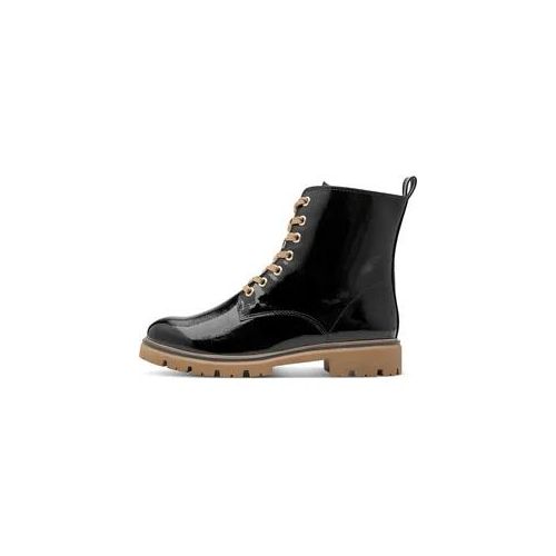 marco tozzi Schnürboots, Blockabsatz, Schnürstiefelette in glänzender Optik (schwarz)