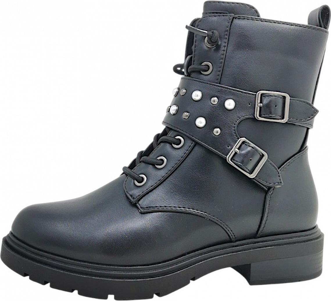 marco tozzi Schnürstiefelette, Blockabsatz, Schnürboots mit Zierschnallen und Zierperlen (schwarz)