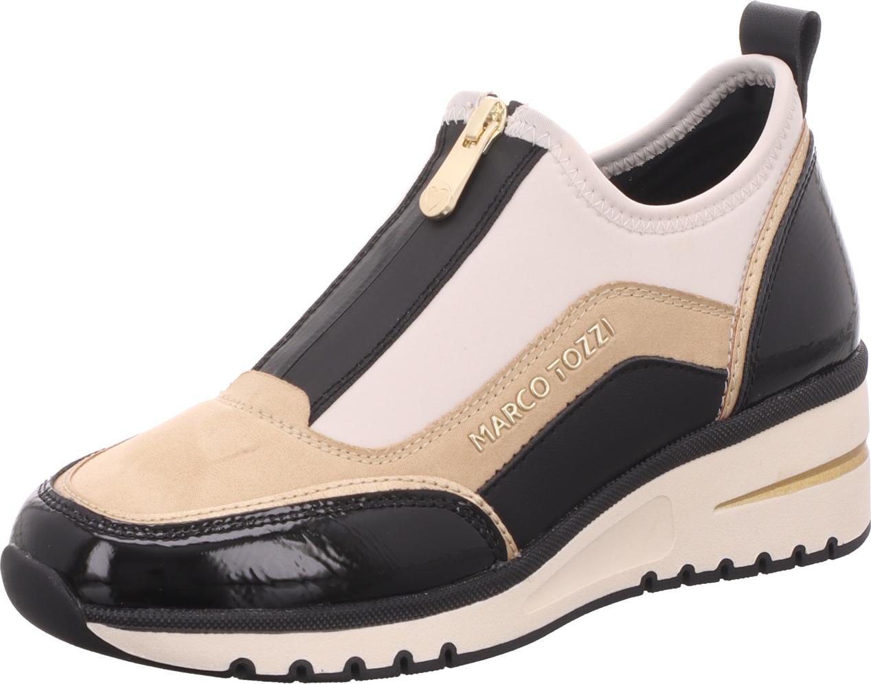 marco tozzi Slip-On Sneaker, Keilabsatz, Halbschuh, Freizeitschuh mit Front-Reißverschluss (beige/schwarz)