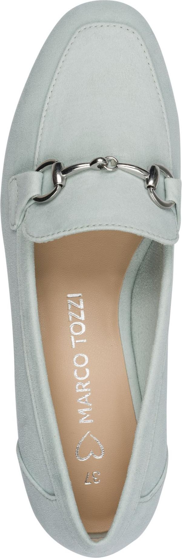 marco tozzi Slipper, Blockabsatz, Loafer, Businessschuh mit Schmuckspange (grün)