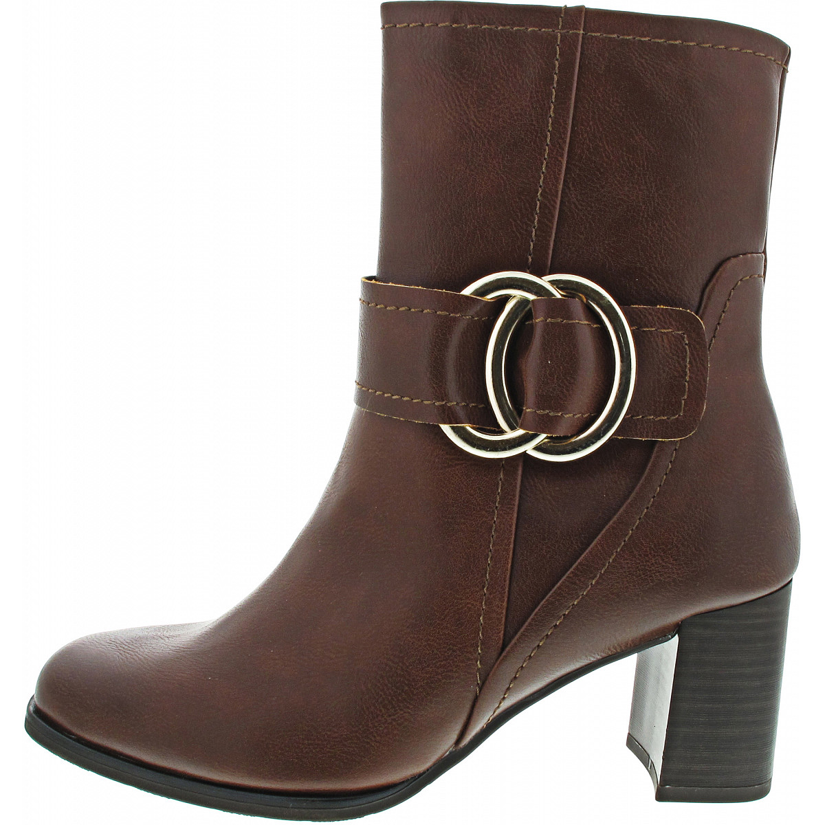 Marco Tozzi - Feel Me Decksohle: super weich, passt sich dem Fuß optimal an - praktischer Reißverschluss an der Innenseite - rutschhemmende Laufsohle - total trendige und elegante Stiefelette - Blockabsatz in Holzoptik - Außenseite mit auffällig großer Schmuckapplikation - ein echter Hingucker