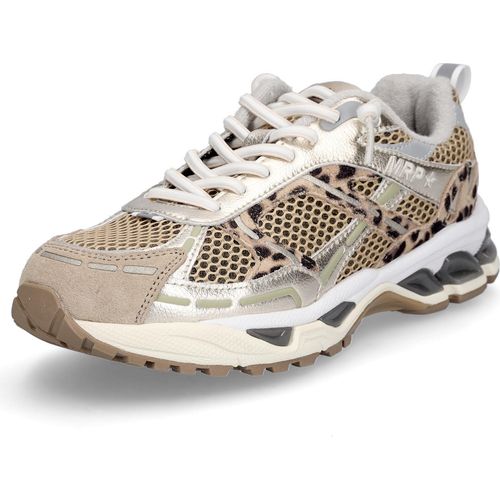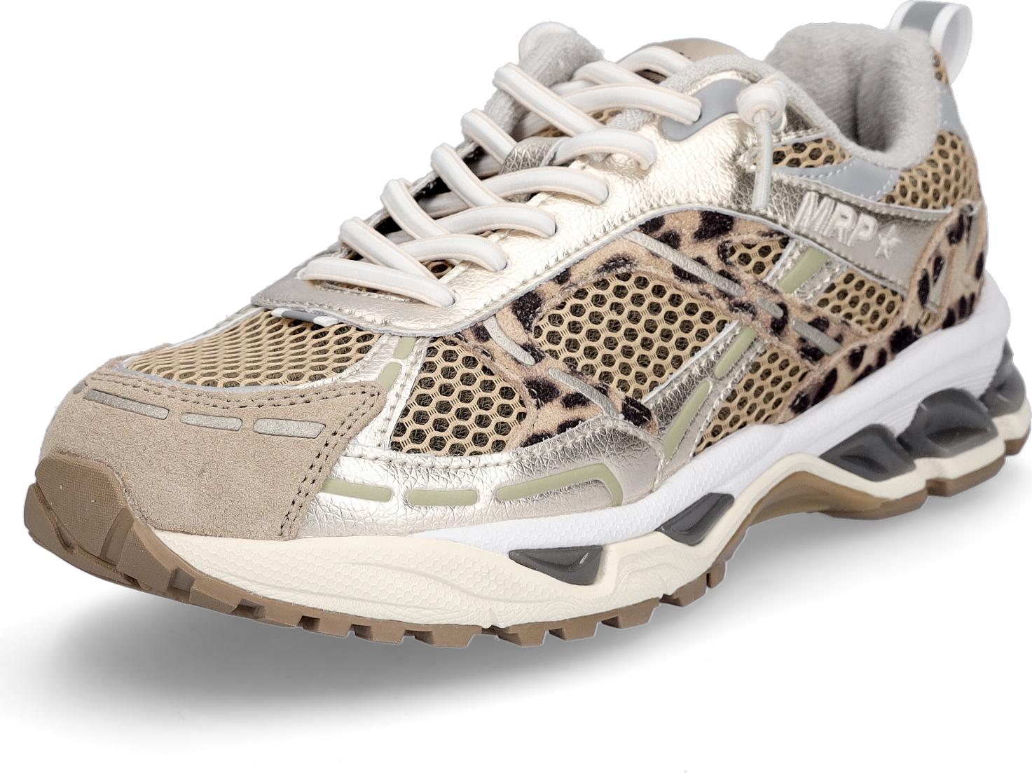 Maripé Damen Sneaker MRP01 aus Mesh und Rauhleder in Beige mit Details in Gold und Leo, mit Textilfutter und textilem Wechselfußbett