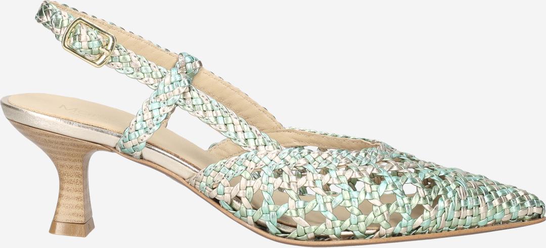 Dieser Slingpumps ist ein Meisterwerk femininer Raffinesse. Die zarte Silhouette schmeichelt dem Fuß und setzt ihn gekonnt in Szene.