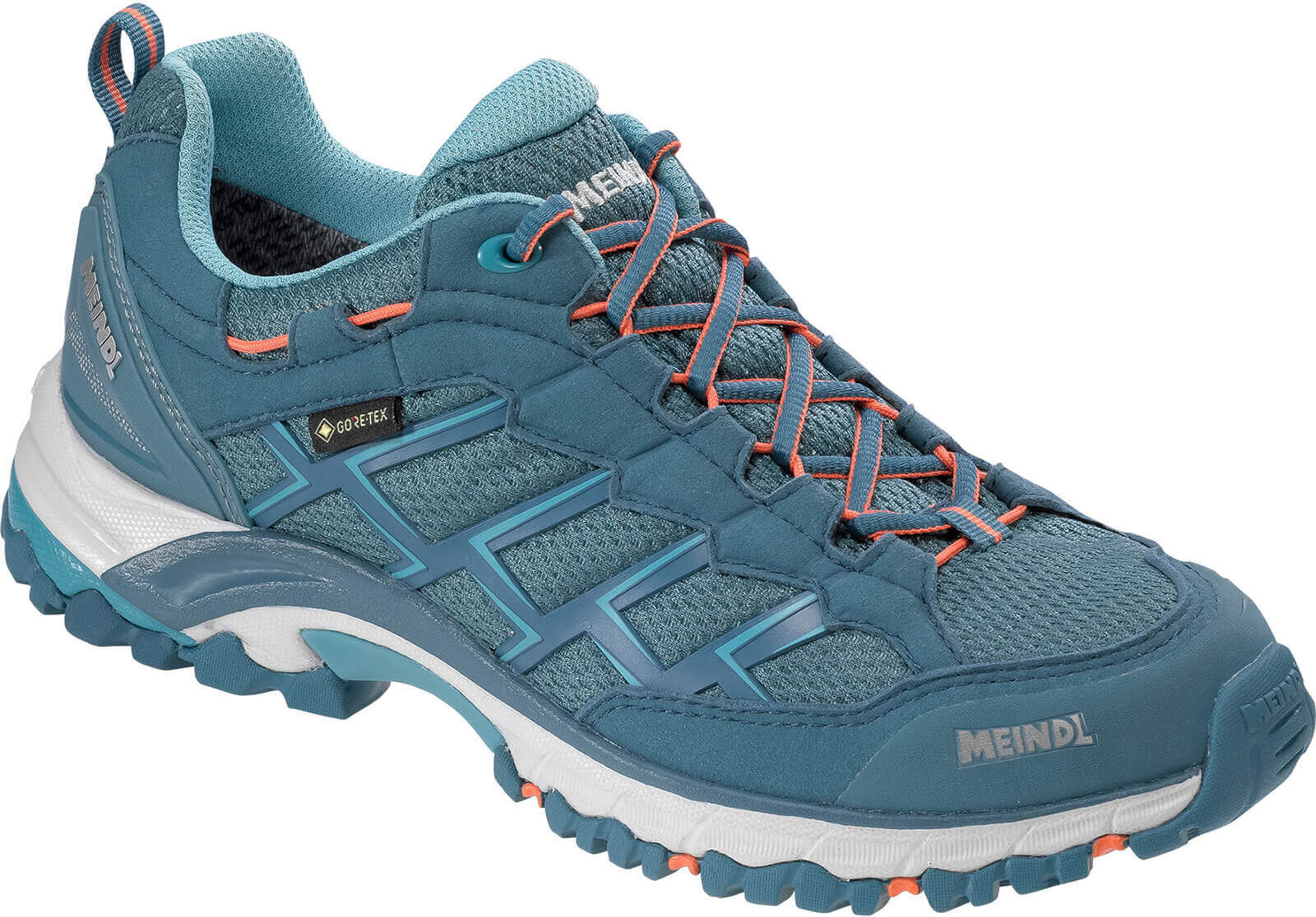 Die kräftigen Farben Blau und Orange verleihen dem Schuh nicht nur ein auffälliges Aussehen, sondern auch eine gute Sichtbarkeit bei schlechten Lichtverhältnissen. Ob in der Stadt oder in der Natur – mit den Caribe Lady GTX Schuhen von Meindl sind Sie jederzeit bequem und sicher unterwegs.