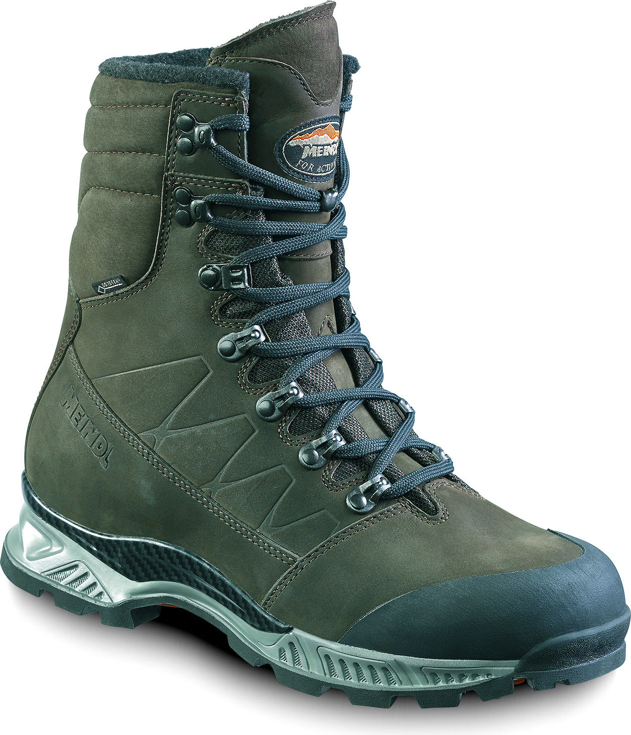 Er eignet sich zum Schneeschuhwandern genauso wie für den Winteransitz bei eisigen Temperaturen. Das kräftige Sil-Nubukleder ist zum Schutz vor Nässe einer GORE-TEX Membran ausgestattet.