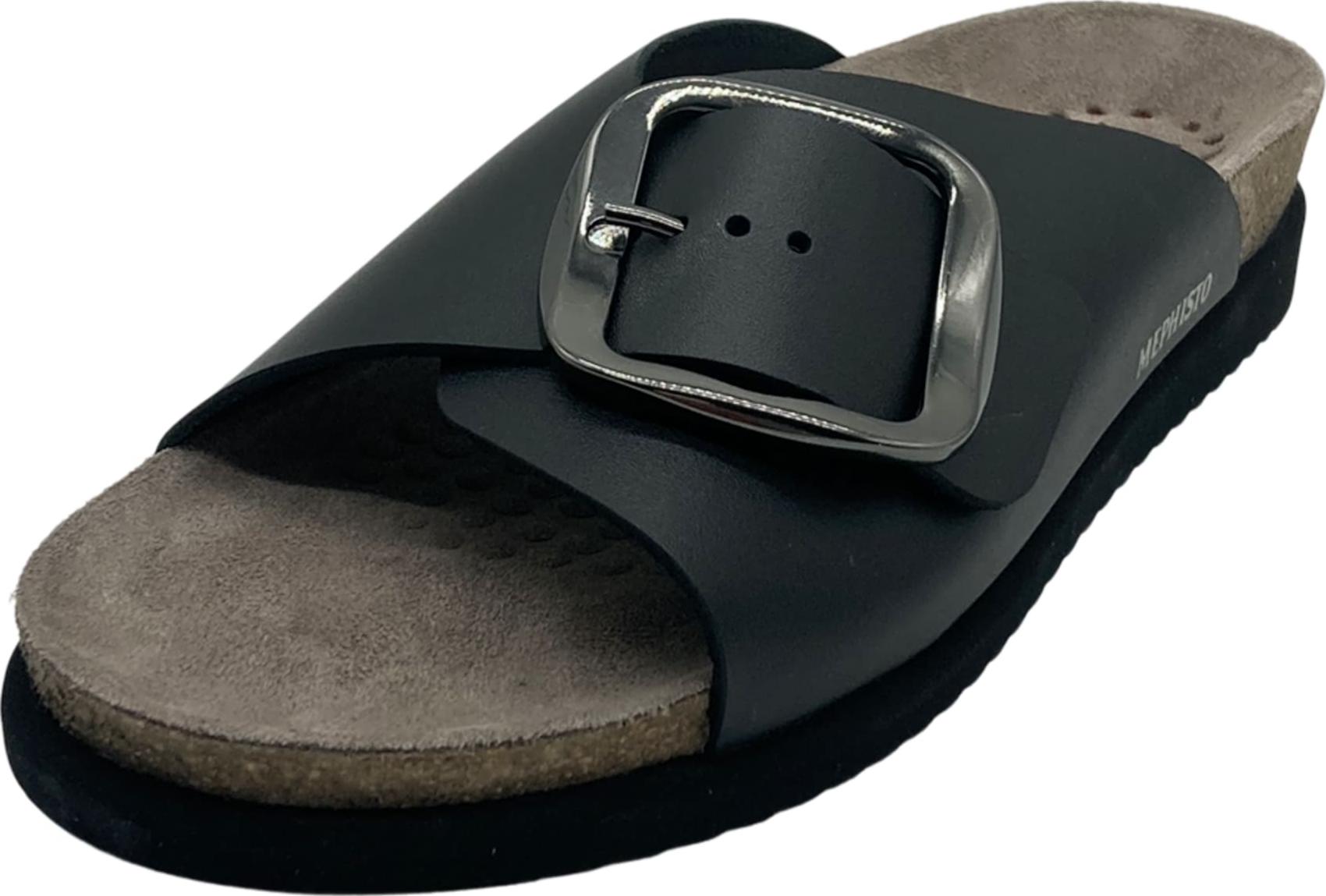 Mephisto Hariana Pantolette mit Schnallenverschluss aus schwarzem Glattleder:Die sommerliche Mephisto Pantolette in zahlreichen Farb- und Materialvarianten sieht nicht nur super aus, sondern ermöglicht Ihnen durch die hochwertigen Materialien und Technologien einen angenehmen Tragekomfort. +