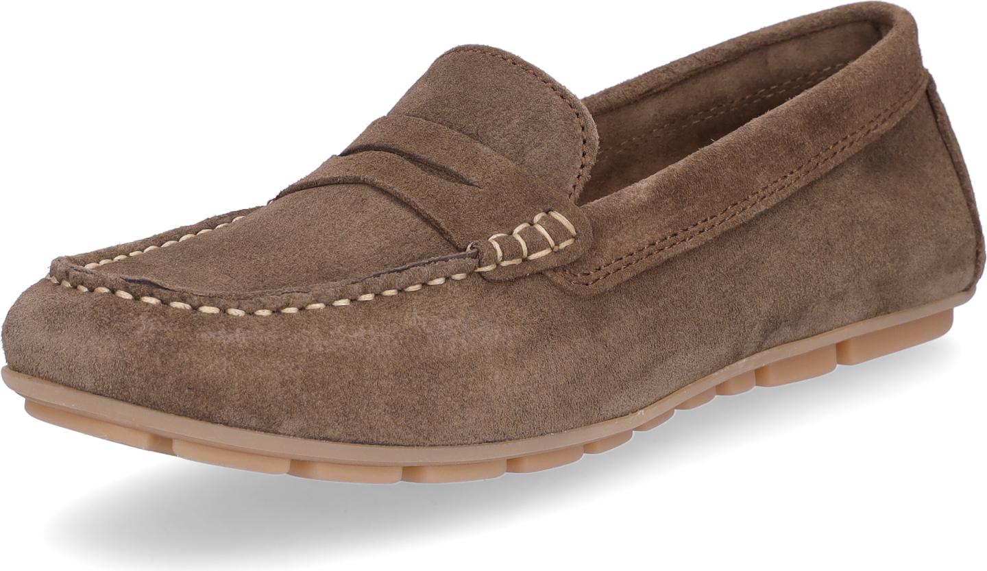 MIDS MIRELLA Damen Mokassin braun, Slipper aus Rauleder mit Leder-Innensohle und Gummisohle (braun)