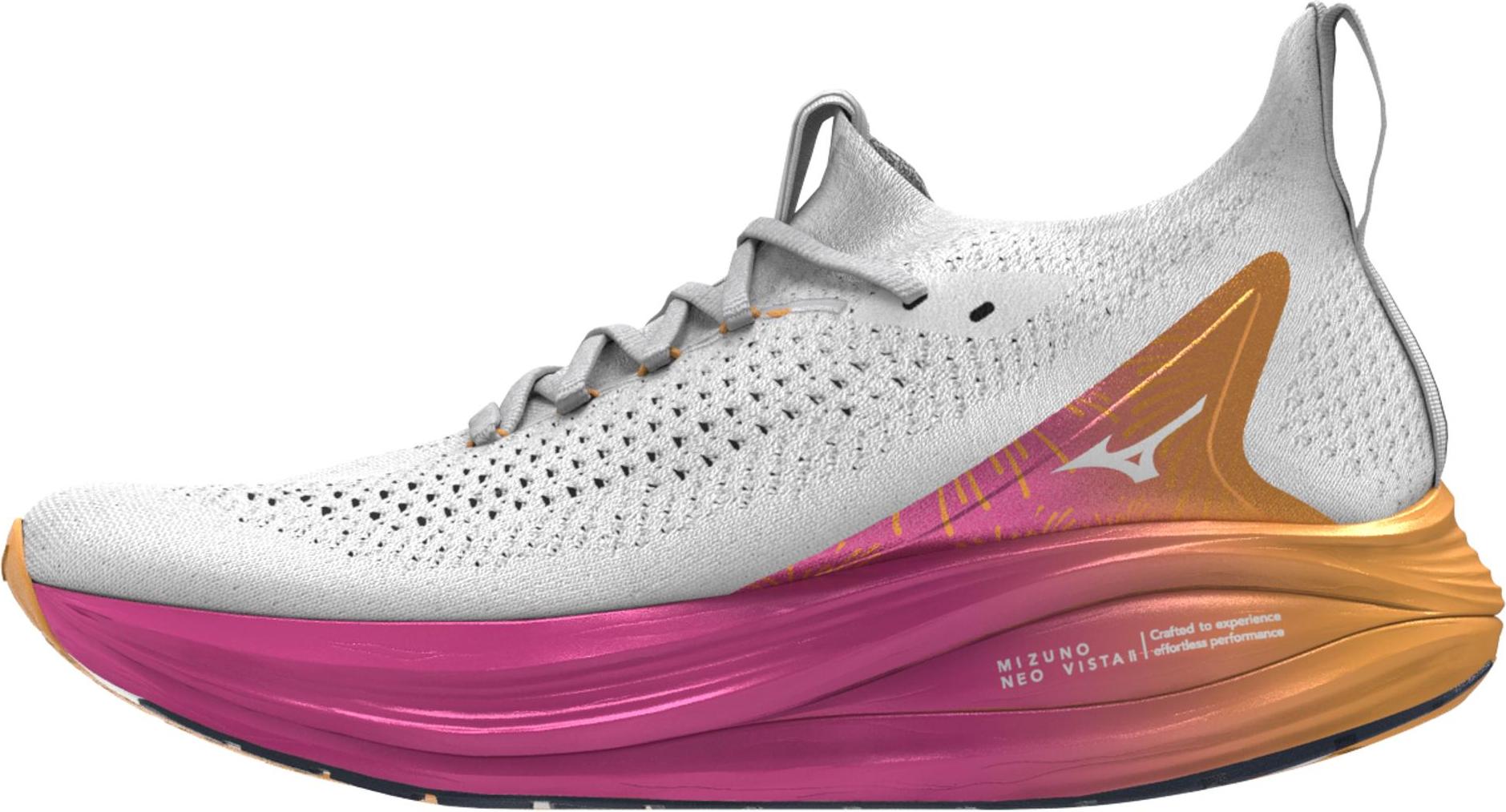Die Rocker-Geometrie unterstützt deinen natürlichen Abrollvorgang und sorgt für flüssige Übergänge von der Ferse bis zur Spitze.Der Neo Vista 2 ist besonders leicht fürs Trainingssegment und eignet sich ideal für Läufer, die einen Schuh suchen, der sowohl im lockeren Dauerlauf als auch bei Tempowechseln überzeugt.Vorteile auf einen BlickUltra weiche Zwischensohle mit energiereicher Rückfederung.Stabilität durch Wave-Platte, trotzdem flexibel und dynamisch.Atmungsaktives Strick-Obermaterial für sicheren Sitz und Komfort.Erlebe mit dem Mizuno Neo Vista 2 deinen idealen Supertrainer – komfortabel genug für lange Läufe und reaktiv genug für dein Tempo-Training.