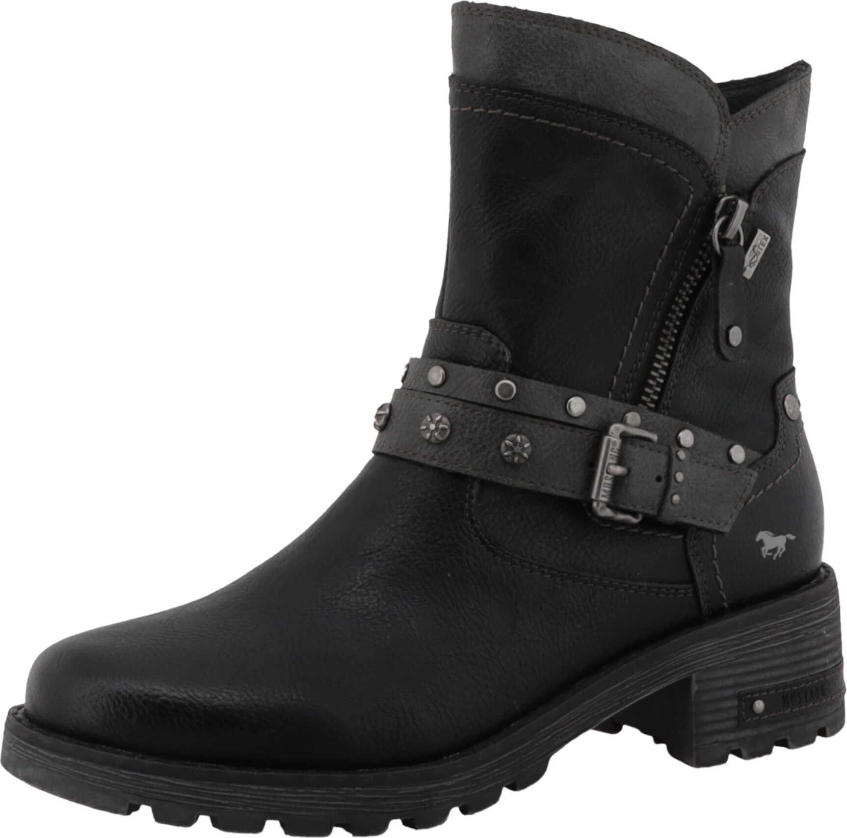 mustang shoes Haukea Winterboots Biker Boots mit Blockabsatz und TEX-Membrane (grau/schwarz)