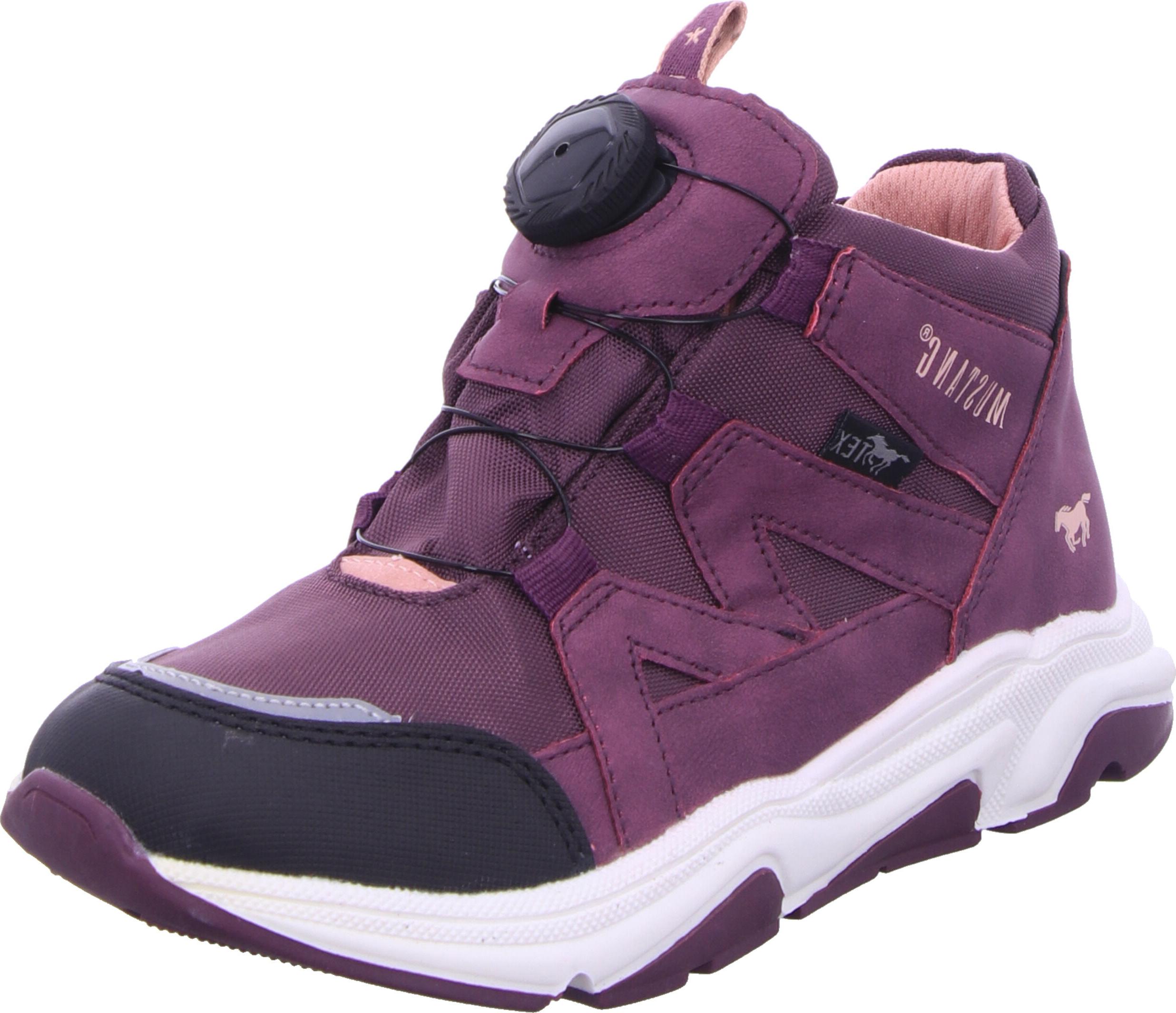 Gewicht , 800 g, |Farbe , lila, |Obermaterial , Materialmix: Synthetik/Textil, |Obermaterialart , Materialmix: Synthetik/Textil MustangTEX, |Obermaterialeigenschaften , TEX-Membran, |Innenmaterial , Warmfutter, |Innenmaterialeigenschaften , wärmend, |Stil , sportlich, |Besondere Merkmale , mit TEX-Membran, |Verschluss , Schnellverschluß, |Schuhspitze , Rund, |Laufsohlenmaterial , TPR, |Membrane , MustangTEX, |Reinigungseigenschaften , mit Imprägnierspray, |Schuhweite , normal, |Schafthöhe , 10 cm, |