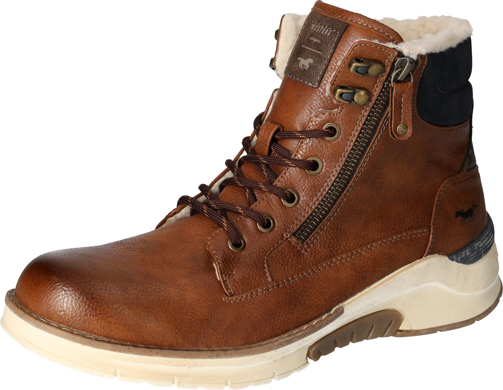 Ideal für kalte Wintertage ist der dunkelbraune und warm gefütterte Schnürbootie aus dem Hause MUSTANG. +