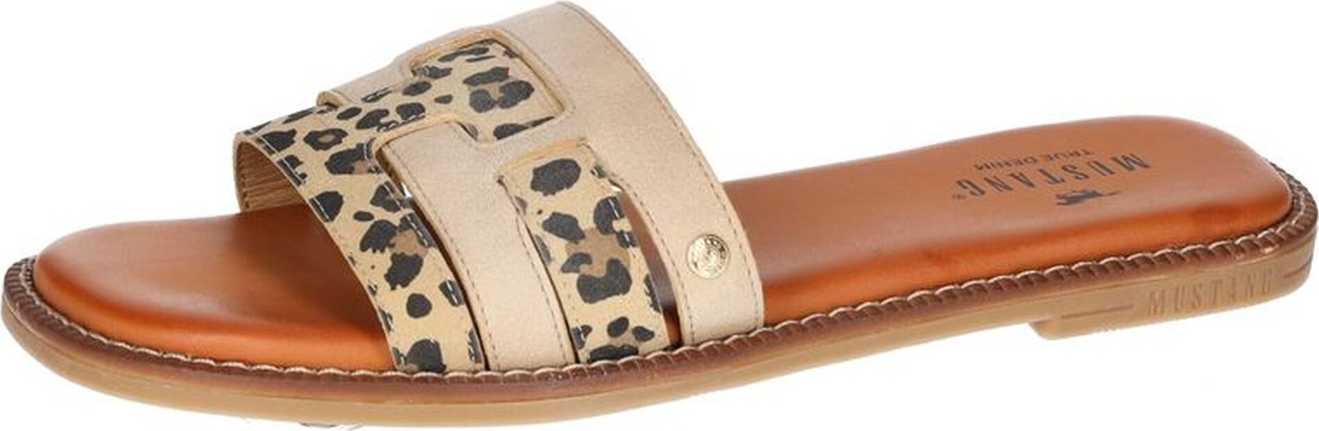 mustang shoes Pantolette, Flats, Sommerschuh, Urlaubschuh, Slides mit Leo-Einsätzen (beige)
