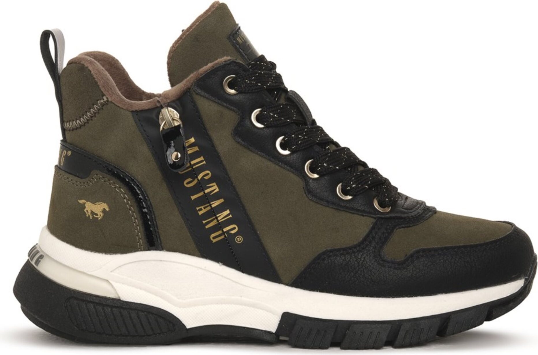 mustang shoes Schnürboots, High Top Sneaker, Stiefelette mit zusätzlichem Reißverschluss (grün)