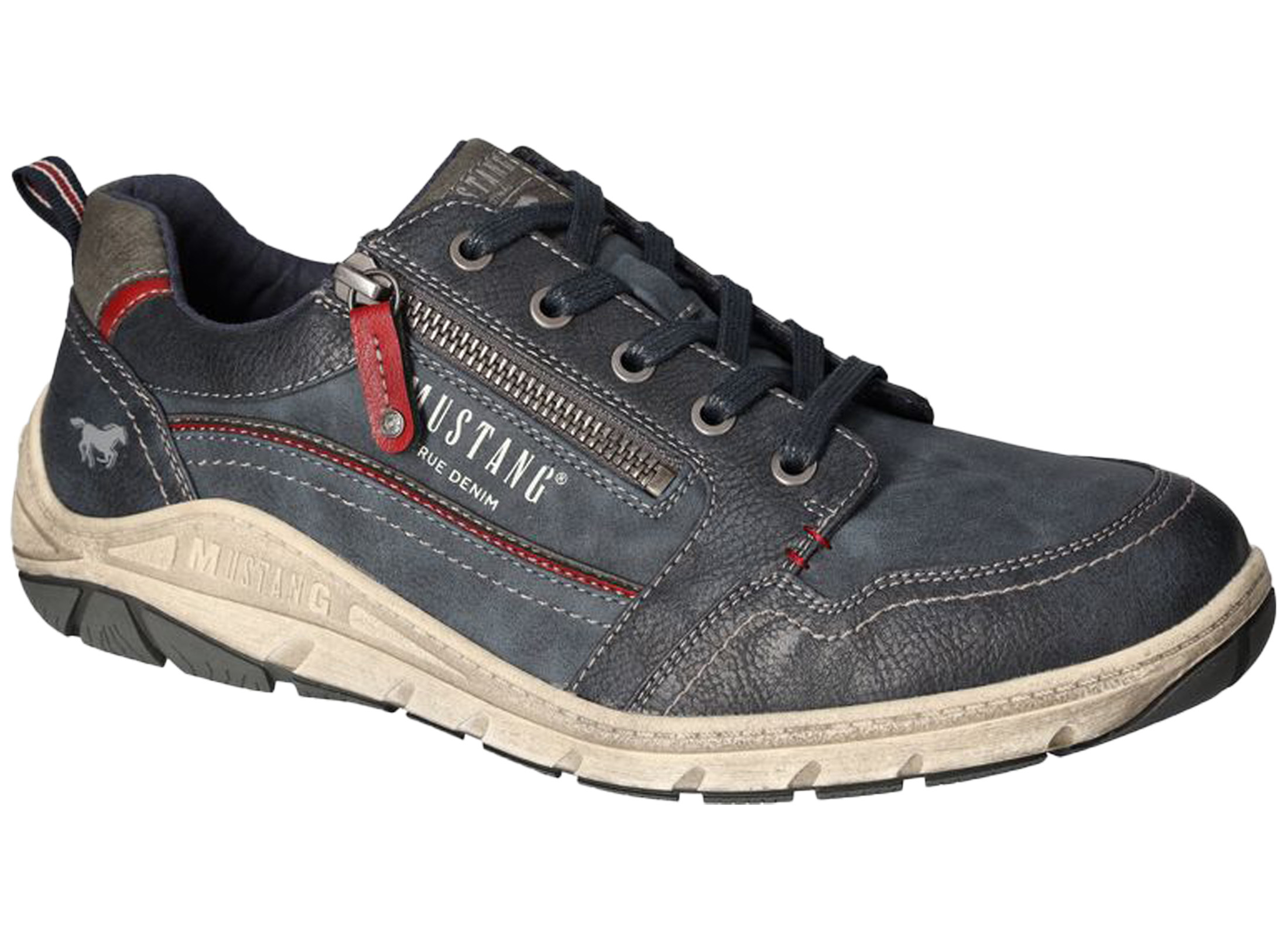 Mustang Herren Sneaker Schnürung Zipper Halbschuh 4160-302, Größe:44 EU, Farbe:Blau 4160_302_8_44