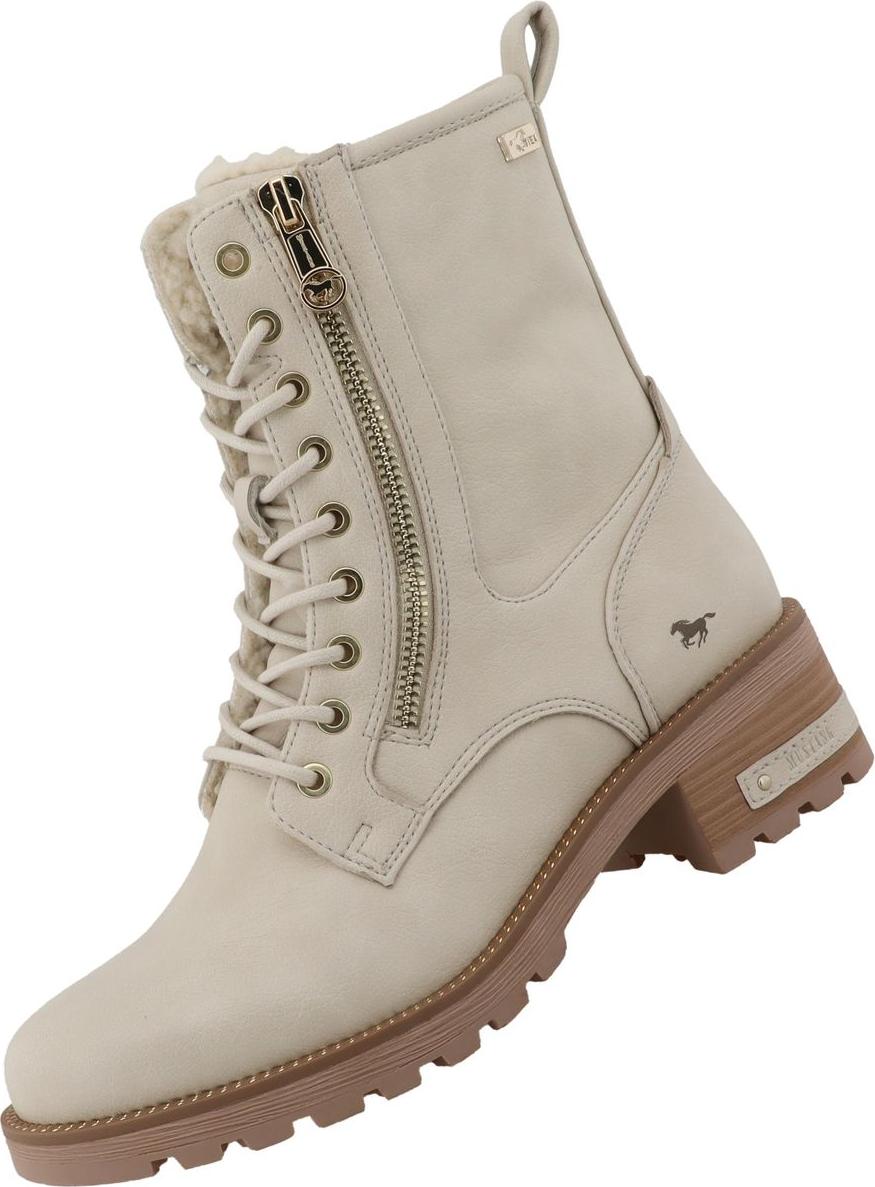 mustang shoes Stiefelette Lederimitat Schnürstiefelette (beige)
