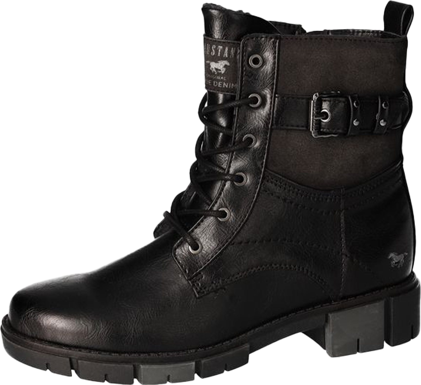 Mustang Damen Stiefelette warm gefütterter Schnürboot mit Schnalle 1443-601, Größe:39 EU, Farbe:Schwarz 1443_601_9_39