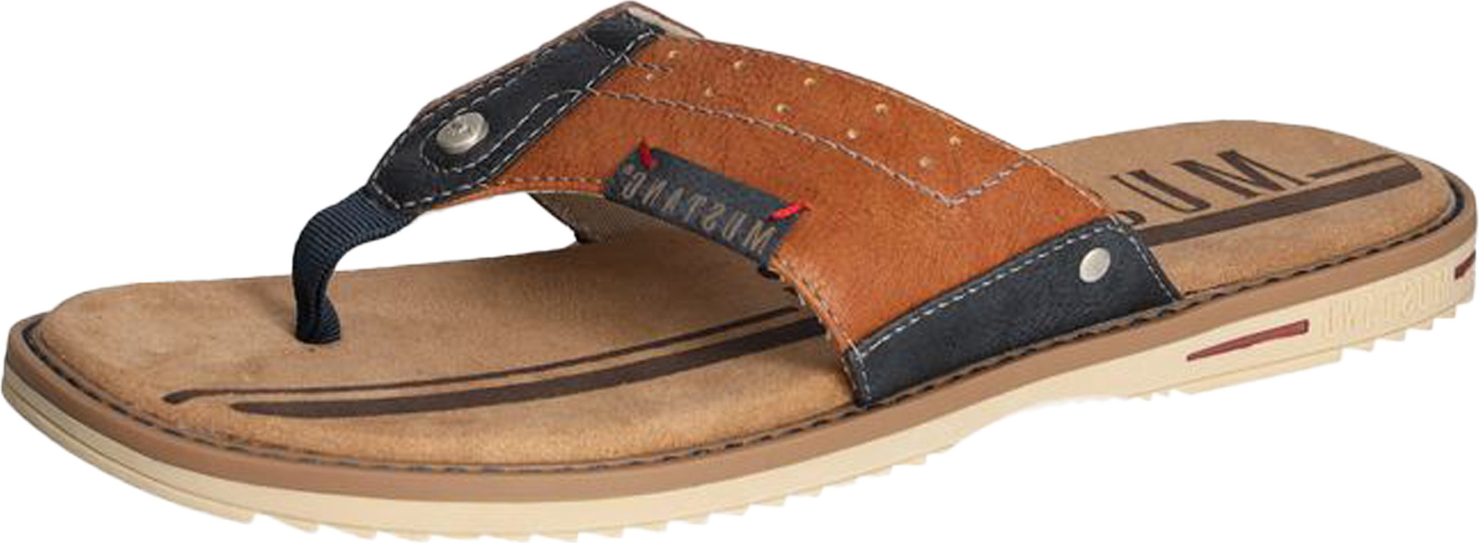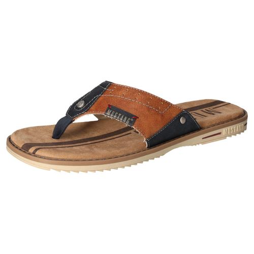 mustang shoes Zehentrenner, Sommerschuh, Schlappen, Poolslides, Badeschuh, stylische Farbkombi (braun/blau)