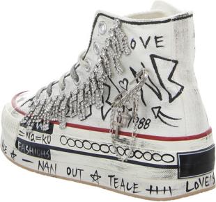 Dieser verspielte Sneaker High in strahlendem Weiß verkörpert perfekt die Vereinigung von Eleganz, Komfort und lässiger Coolness, die NAN-KU auszeichnet. +
