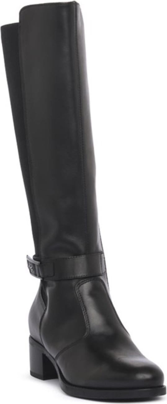 Zeitloser Damenstiefel mit mittelhohem Blockabsatz und dezentem Zierdetail am Schaft. +