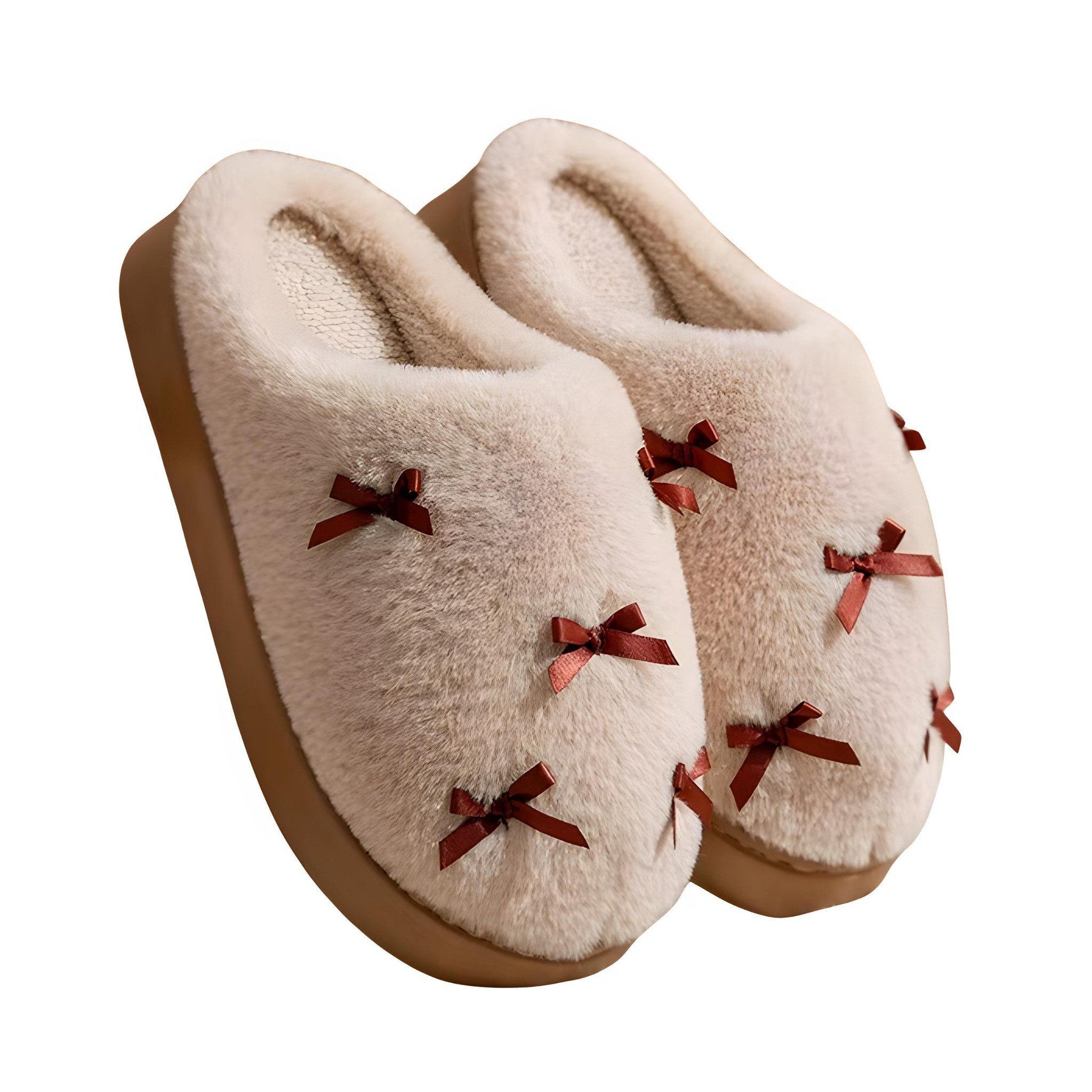 NEXORA Kuschelige Plüsch-Hausschuhe mit Schleifen Plüsch Hausschuhe (Paar) kuschelige Hausschuhe mit niedlichen Schleifchen (braun)