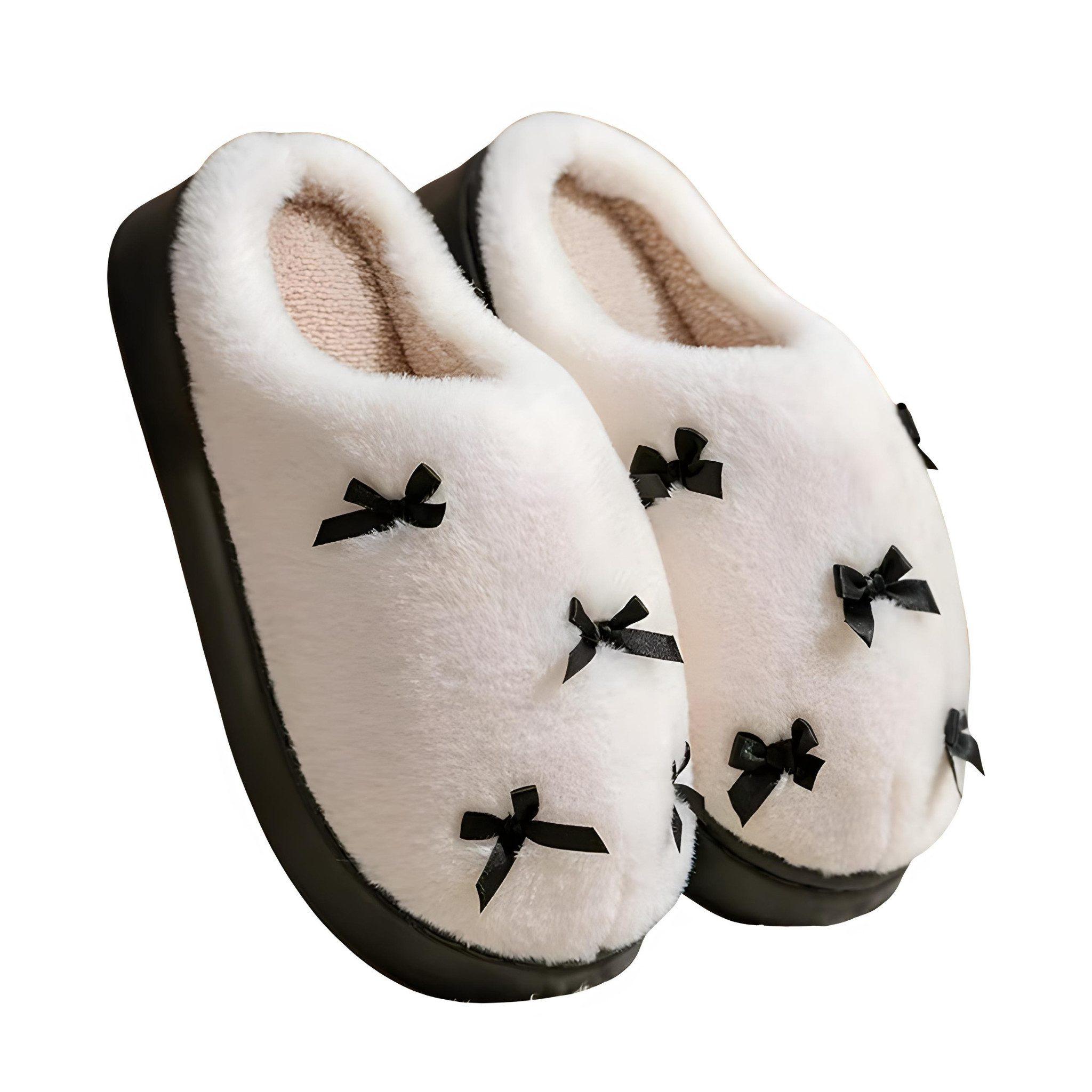 NEXORA Kuschelige Plüsch-Hausschuhe mit Schleifen Plüsch Hausschuhe (Paar) kuschelige Hausschuhe mit niedlichen Schleifchen (weiß)