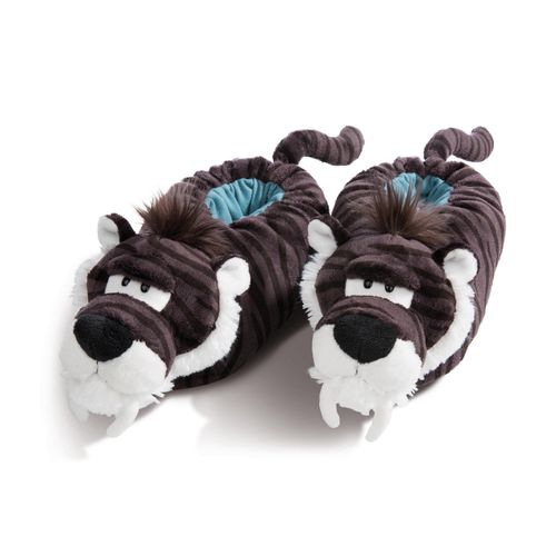 Nici Säbelzahntiger Plüsch Hausschuhe Hausschuh mit plüschigem Tiger Motiv (grau)