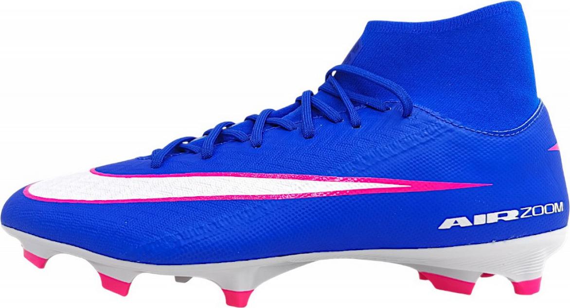 Die Nike FG/MG-Sohle aus wertigem Spritzkunststoff ist leicht und vielseitig - mit Look and Feel der Elite-Sohle inklusive der neuen Mercurial Speedfin-Rillen und abriebzauml,hen Nocken, die fuuml,r dich perfekt den nahtlosen Switch zwischen Naturrasen- und Synthetikrasenplatz plus Asche- oder Sandplatz meistert.Sichere dir den Nike Air Zoom Mercurial Superfly X Academy FG/MG und pushe dein Game.Produktdetails:Hauptfarbe: BlauTechnologie: Komfortabel, Dämpfung, Griffigkeit, Haltbarkeit, Leicht, ZOOMNachhaltigkeit: Teilweise aus recycelten Materialien Obermaterial: Synthetik