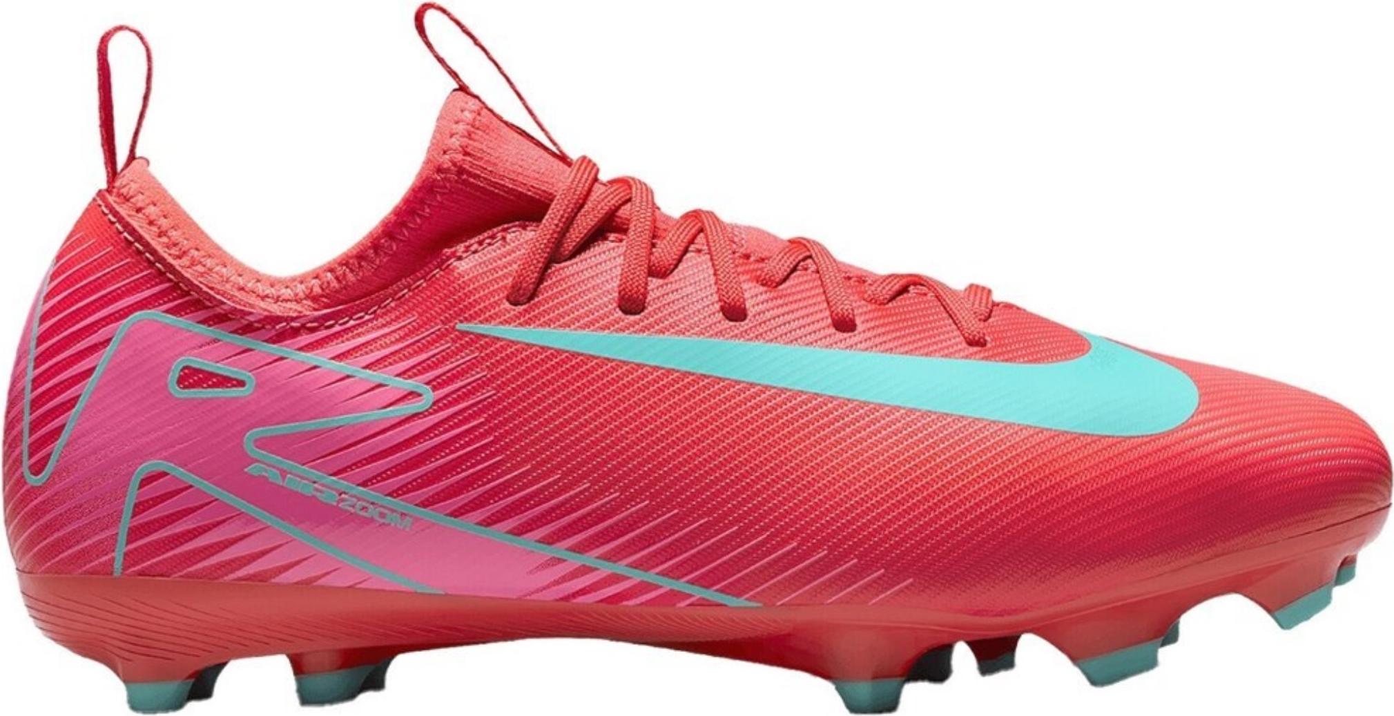 Mit dem Junior Nike Mercurial Vapor 16 Academy holst du dir solide Features zu einem interessanten Preis an deine Fuuml,szlig,e.Schouml,nesnbsp,Fit amp, FeelFuuml,r uuml,berzeugende Performance und schouml,ne Passform hat Nike das Upper des Kinder-Academy-Modells entsprechend gestaltet: Geschmeidiges und pflegeleichtes Synthetik-Obermaterial, das neue Zick-Zack-Muster des Mercurial 2024 als Microstruktur fuuml,r ein Plus an Ballgrip und der knouml,chelfreie Low Cut fuuml,r den markanten Vapor-Signature-Look machen diesen Nike Mercurial Fuszlig,ballschuh fuuml,r Kinder zur beliebten Option.Mitnbsp,Firm Ground / Mixed Ground-SohleMit der Nockensohle fuuml,r festen Naturrasen, Kunstrasen und Hartplatz setzt du deine Bewegungen schouml,n um. Die Nike FG/MG-Sohle aus gutem Spritzkunststoff ist vielseitig ndash, mit Merrucial Sohlenplatte mit angedeuteten Speedfins und AIR Zoom Dauml,mpfung und den abriebzauml,hen Nocken, mit denen du nahtlos zwischen Fuszlig,ballplauml,tzen und Spielfeldern mit Naturrasen, synthetischem Rasen und Asche oder Sand (also typischer Hartplatz) hin- und herswitchen kannst.Bestelle dir den Nike Jr Air Zoom Mercurial Vapor XVI Academy FG/MG Kids und genieszlig,e den Speed-Faktor.Produktdetails: Typ: Nike Fuszlig,ballschuhe mit Hybidsohle Linie: Mercurial Modell: Vapor 16 Preisstufe: Midrange-Modell Grouml,szlig,en: fuuml,r Kinder Sohle: FG/MG (Firm Ground / Mixed Ground) Einsatzbereich: fuuml,r festen Naturrasen, Kunstrasen und Hartplatz Kragenschnitt: flach (Low Cut)Material: Nachhaltiges Produkt: mit recycelten Materialien hergestellt Obermaterial: Textil, Synthetik Innenfutter: Textil Laufsohle: Sonstiges Material