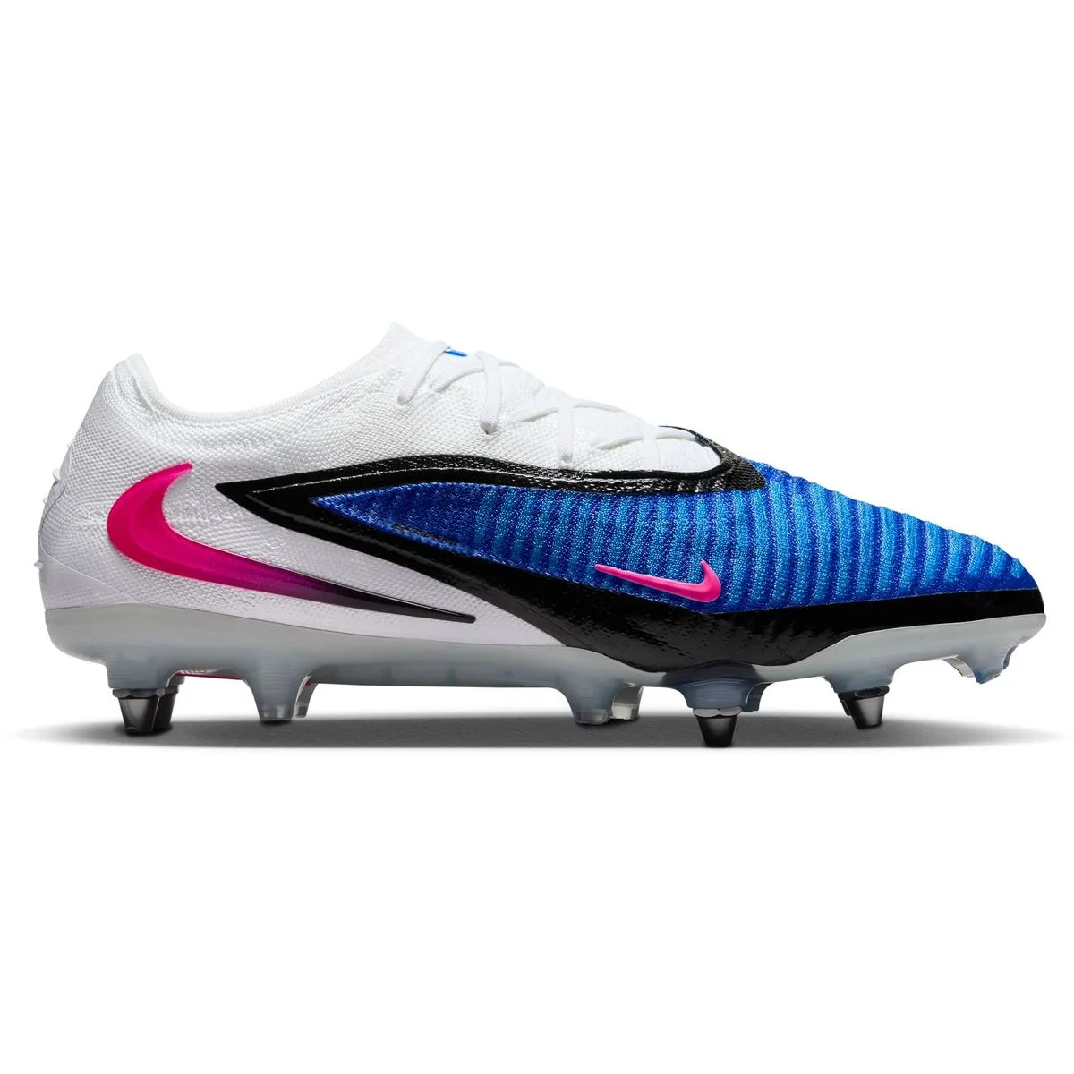 Die Sohle ist fuuml,r aufgeweichten Naturrasen ausgelegt. Lass uns diese wendigen Nike Fuszlig,ballschuhe zusammen im Detail anschauen und schauen, ob sie was fuuml,r dich sind:Nike Phantom 6 aus dem Attack PackDie Fuszlig,ballschuhe aus dem Nike Attack Pack rocken mit dem knackigen Konstrast aus Weiszlig,, leuchtendem Racer Blau und knallendem Pink Blast fuuml,r die Details und Akzente.