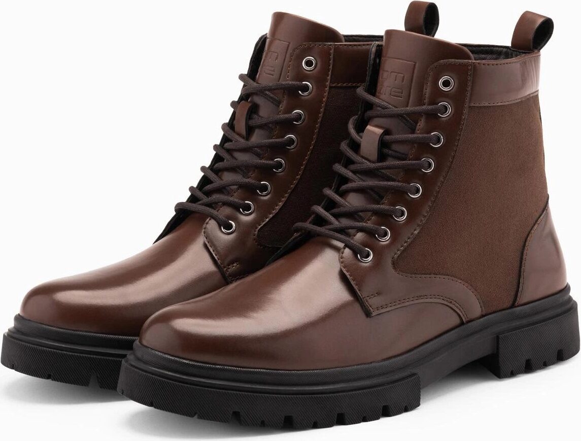 OMBRE Herren-Trapperstiefel mit hohem Schaft aus kombinierten Materialien Schnürboots (braun)