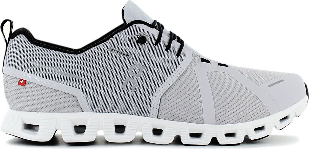 Marke: ONModell-Nr.: 59.98841Modellname: CLOUD 5 WATERPROOFArt: Herrenschuhe - Sportschuhe, SneakerFarbe: grau +, weiß (glacier white)Obermaterial: Textil / Mesh +, Synthetik (WATERPROOF =, wasserdicht)Innenfutter: Textil / Mesh - atmungsaktivInnensohle: Textil FußbettWechselfußbett: herausnehmbare InnensohleLaufsohle: EVA +, Gummi =, extra leicht +, flexibel, CLOUDTECVerschluss: Gummizug +, SchnürsenkelAbsatz: flach - kein AbsatzSchuhform: rundGrößenangabe: fällt 1 Nummer kleiner aus (größer kaufen)Weitenangabe: G - normal Weiteinterne Artikelnummer für Ihre Rückfragen: 102-20-0021