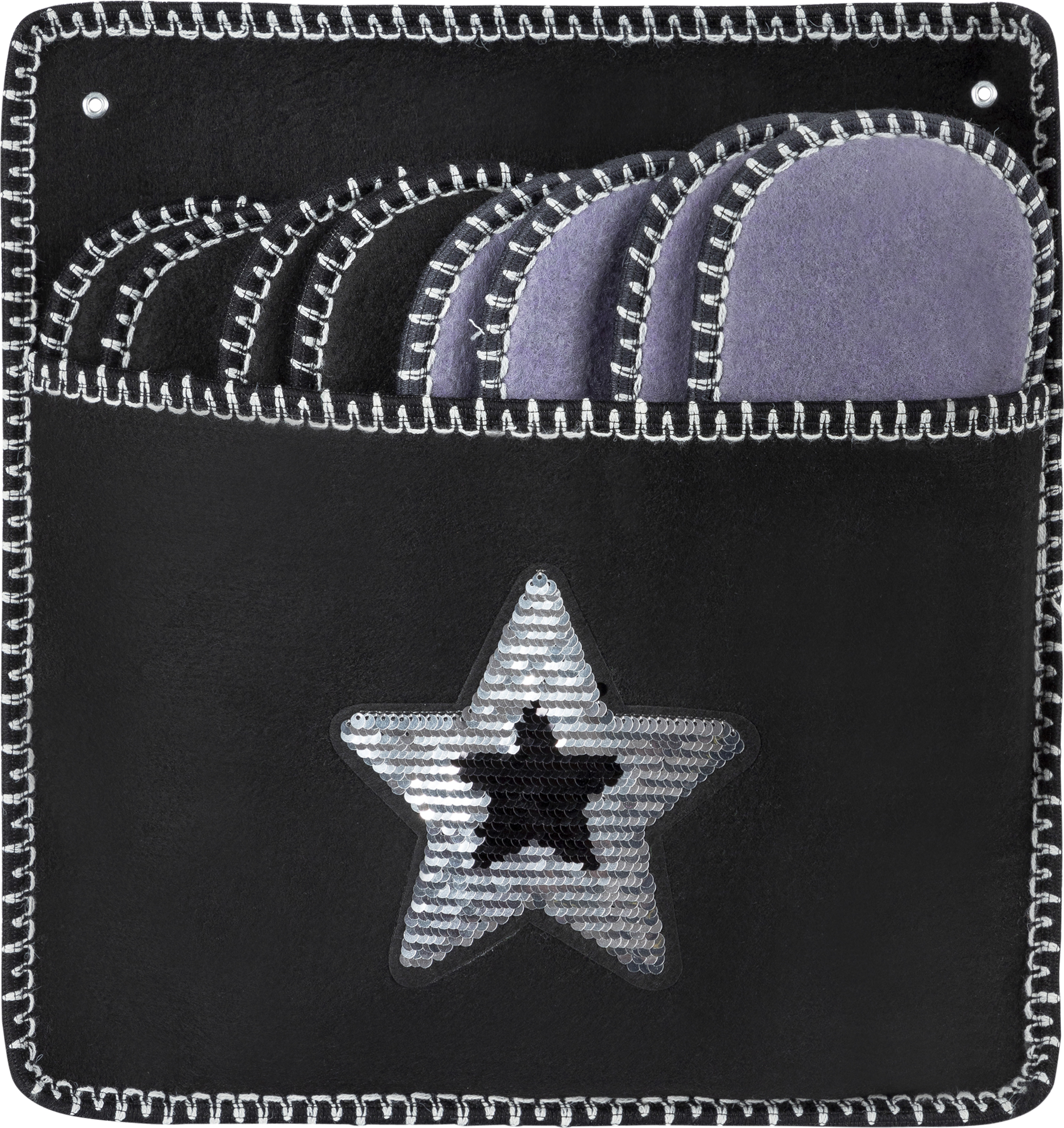 Gästepantoffel und Hausschuhe für Damen, Herren und Teenager | 4 Pantoffel Sets (1 Paar 36/39, 2 Paar 40/42, 1 Paar 43/45) | Dekorativ untergebracht in einer Aufbewahrungstasche | Waschbar bei 30 Grad | Farbe der Aufbewahrungstasche: schwarz | Motiv: Stern mit Wendepailletten