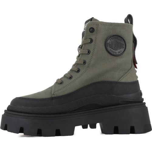 Palladium Damen Schnürboot aus Textil und Synthetik in Olivegrün Schwarz mit Schnürung und Reißverschluss, griffiger Laufsohle sowie Blockabsatz und leichtem Textilfutter