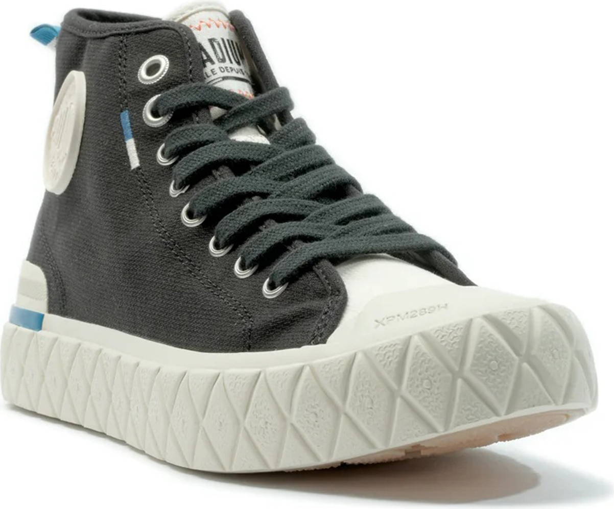 Jeder Schritt auf seiner vergrößerten rautenförmigen Laufsohle erinnert an das unverwechselbare Rautenband unserer legendären Pampa-Stiefel, während die Tricolore-Flagge, die stolz die Seite ziert, an das tief verwurzelte französische Erbe von Palladium erinnert. Erleben Sie in dieser Saison die Enthüllung einer neuen Chukka-Höhe, die meisterhaft als der Inbegriff eines Sneaker-Stiefel-Hybrids für sonnigere Tage gestaltet wurde.