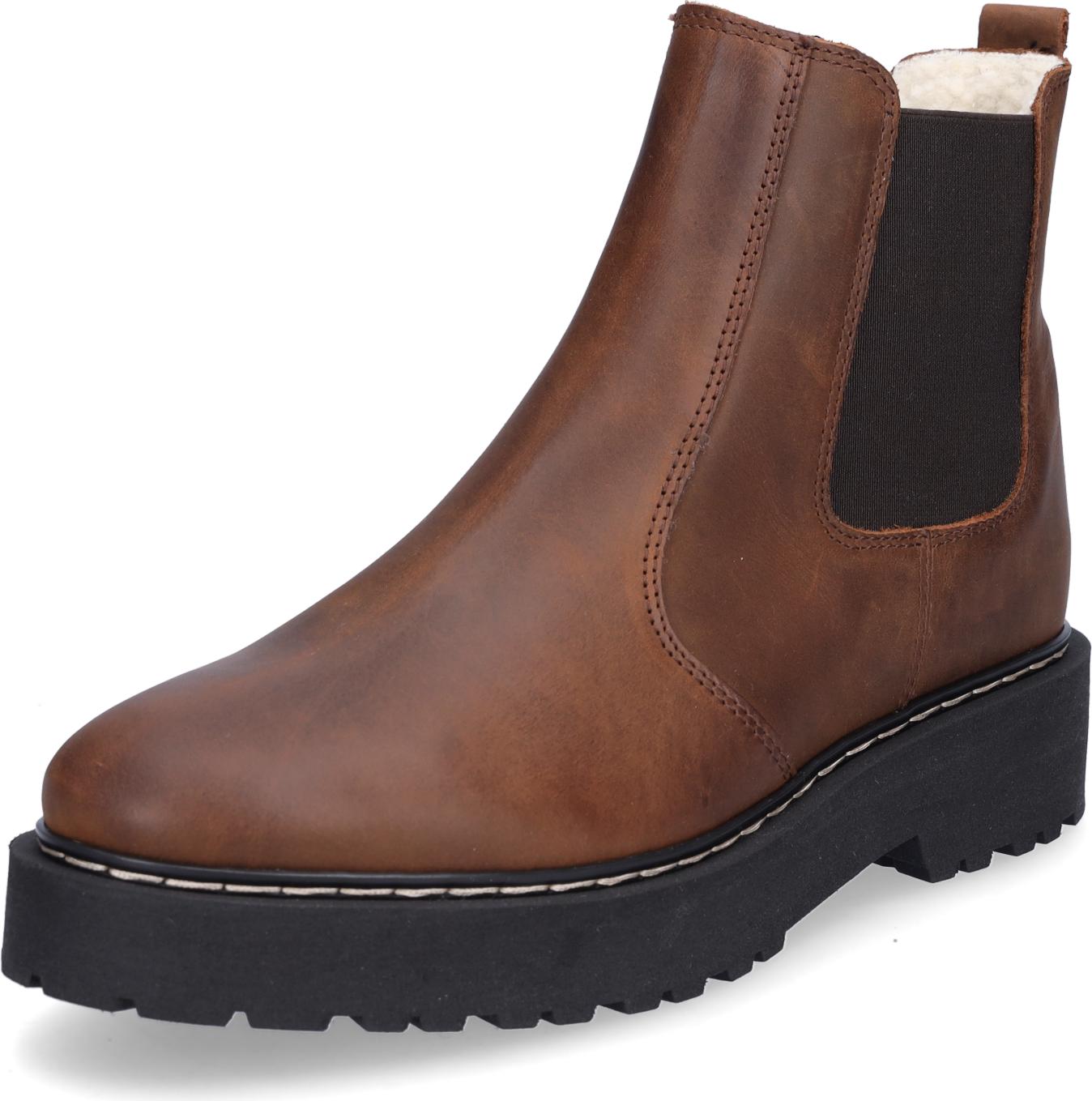 Palpa Damen Chelsea Boot aus Glattleder in Tabaco mit zwei klassischen elastischen Einsätzen, kuscheligem Teddyfutter softer Innensohle aus Textil