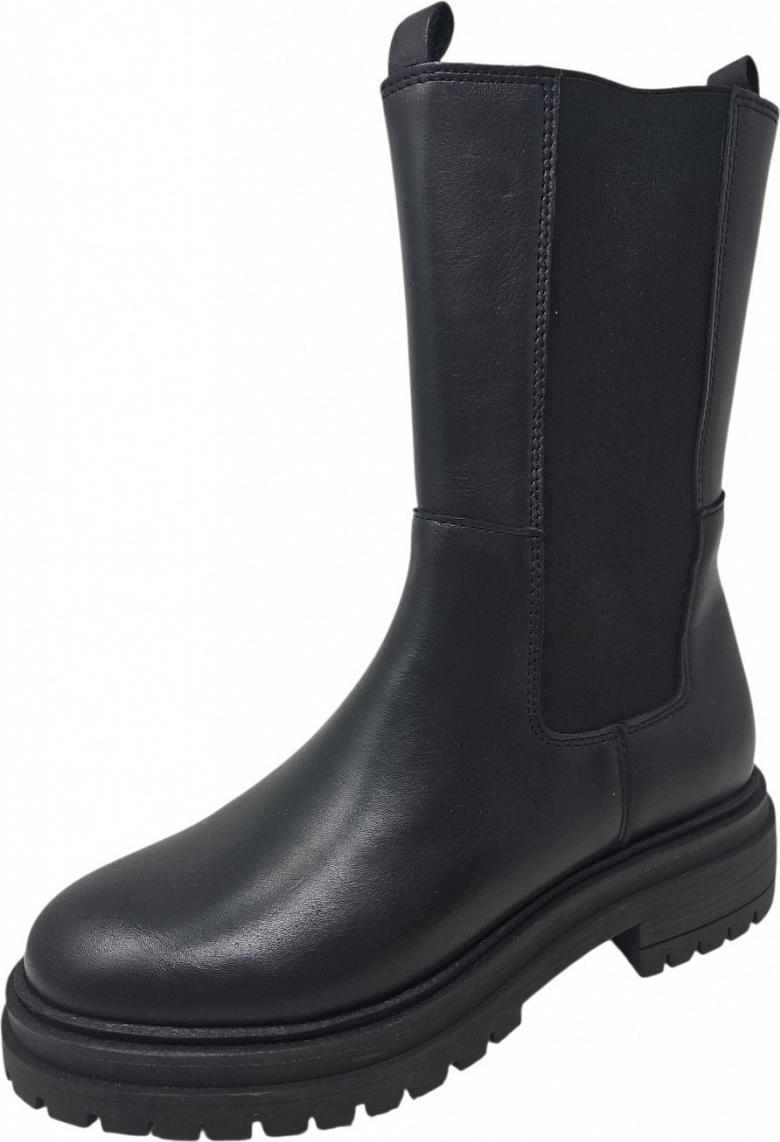 Palpa Damen Chelsea Stiefel aus Glattleder in Schwarz mit Gummizug, Reißverschluss, breitem Blockabsatz und leichtem Textilfutter
