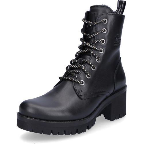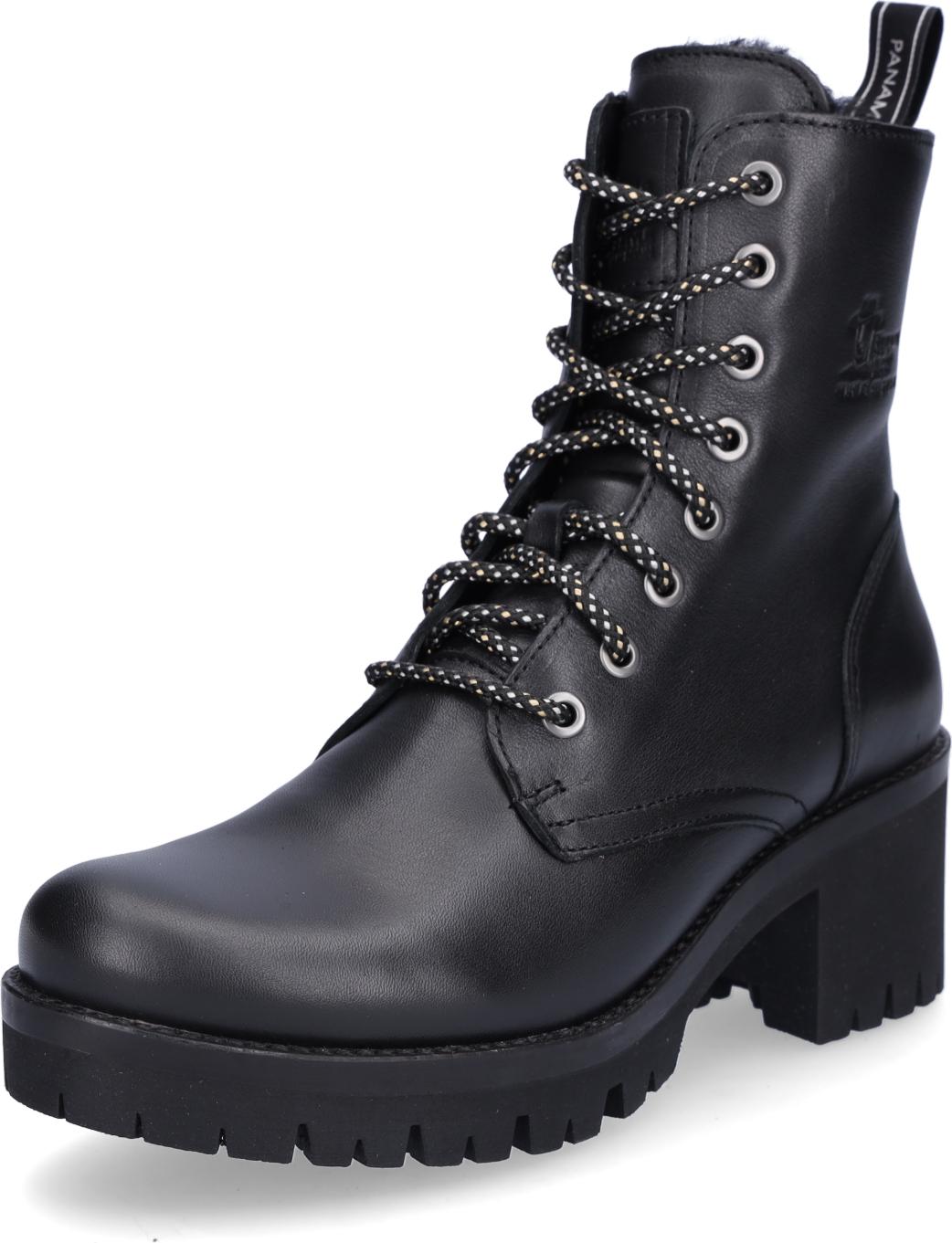 Panama Jack Damen Stiefelette aus Nappaleder in Schwarz mit Schnürung, Reißverschluss, 7,5 cm Blockabsatz und Warmfutter aus Wolle