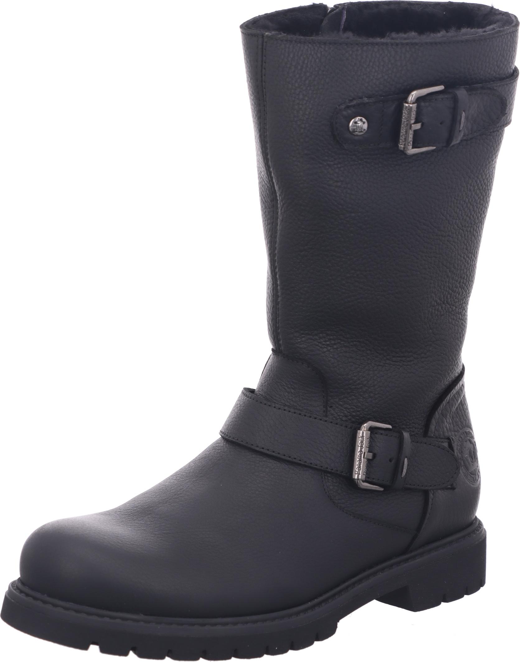 Die schwarzen Panama Jack Damen Biker Boots FERGIE IGLOO B1 aus Glattleder bieten eine robuste und stilvolle Lösung für den Winter. +