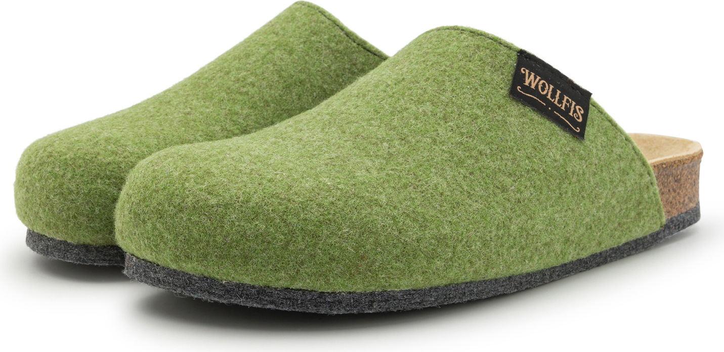 Pantoffelmann Bio Filzclog mit Korkfußbett ABS-Filzsohle Herren Damen Filz Pantoffel Hausschuh (1 Paar) hoher Tragekomfort, angenehme Passform (grün)